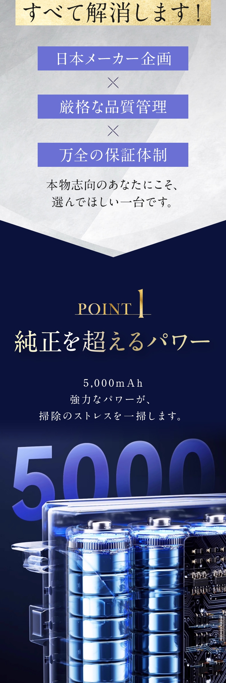 【特徴】 純正バッテリーより高容量5,000mAhセル搭載。