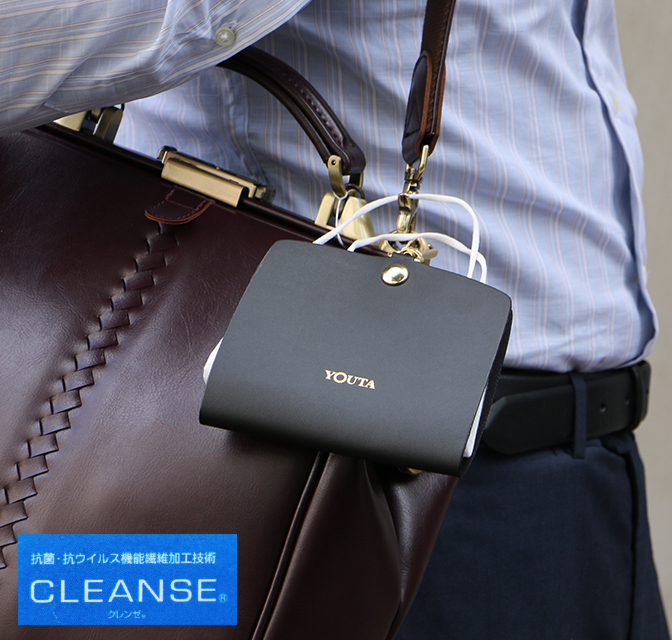 抗菌・抗ウイルス加工素材を使用した国産PUレザーのマスクケース。
