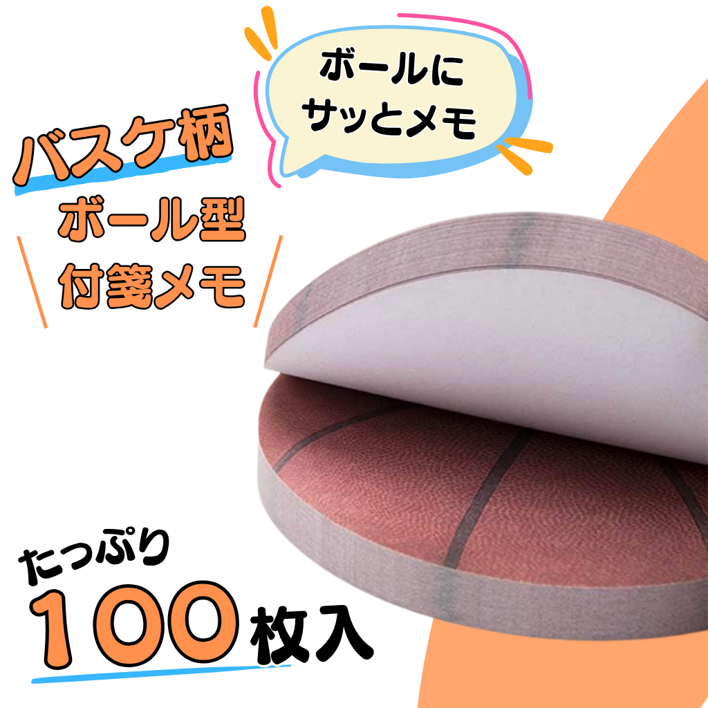 バスケ グッズ 文具 文房具 プレゼント ステーショナリー イベント 卒業 部活 ギフト 学校 バスケットボール型 カラー付箋メモ帳 たっぷり 約100枚
