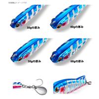アイの位置やウェイトバランスを調整し、フォール姿勢と高速リトリーブでの直進安定性能を向上。ルアー後部に採用されたフィンが姿勢の安定性をさらに高めます。青物は遊泳スピードが速く、ヒットした瞬間にフックへ掛かる重量が大きいため、トリプルフックよりも強度の強いシングルフックを採用。ナブラや跳ねがなく、どうしてもターゲットが浮かない日のシークレットルアーとしてお使いください。