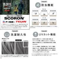 ◇スコーロンとまっても、刺されにくく、逃げていく画期的な防虫性能。アース製薬の開発した防虫剤を、帝人グループのナノレベルの接着技術により生地に固定した防虫繊維。