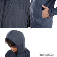 防虫、吸汗速乾、UVカット機能を持つトランスウェット・スコーロン素材に接触冷感機能もプラスし、盛夏でもよりサラッとした着用感を実現したフルジップフーディ。防虫成分を表面のみにドット状にプリントする新技術「ドットオン加工」により、従来のパディング(ドブ漬け)加工よりも素材の柔らかさや通気性を確保しつつ、しっかりと防虫効果を発揮します。フードをかぶれば顔の周りや首の後ろを虫や日差しからガード。様々なアウトドア・アクティビティで快適に着用できます。左胸にポケットを配したアクティブデザイン。
