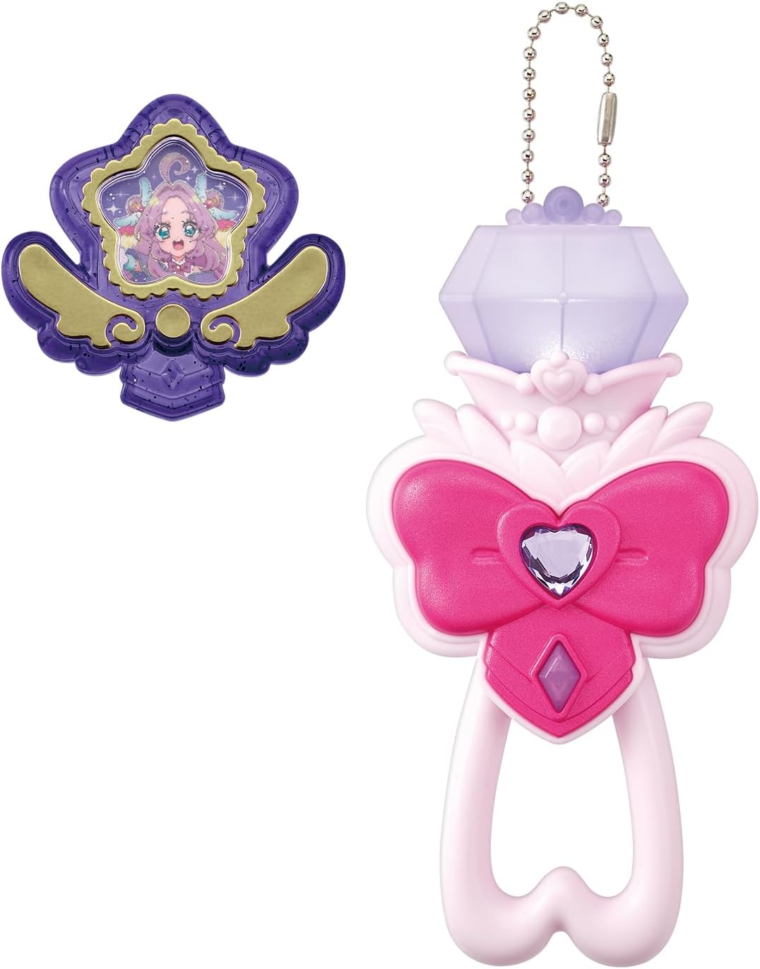 付属の「プリキュアマコトジュエル」を別売りの「ジュエルキュアウォッチ」にセットすることでキュアアンサーとキュアミスティックの変身ボイスが楽しめます。