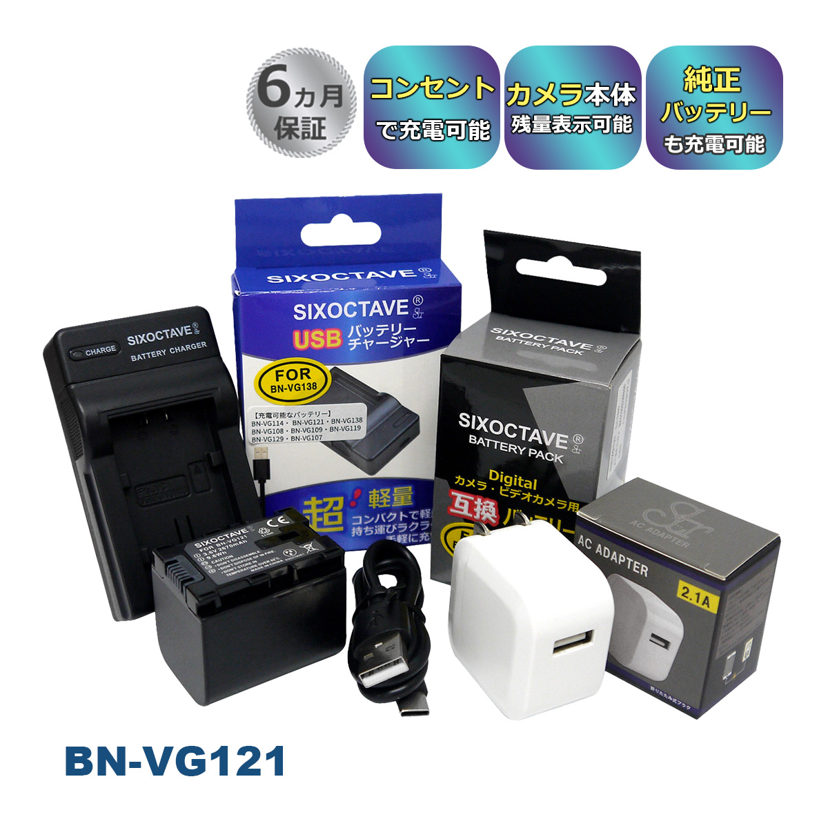 【互換品】 BN-VG129 BN-VG121 Victor ビクター (JVC) 互換 バッテリー 1個と 互換 USB 充電器 コンセント充電用ACアダプター付き 3点set AA-VG1 a2.1