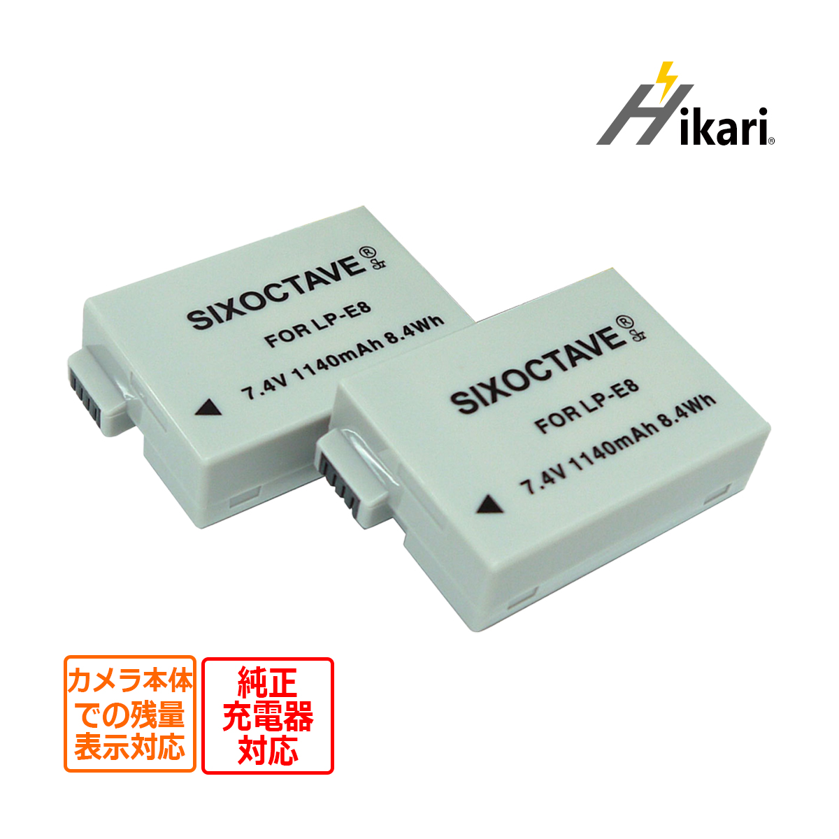 【互換品】 LP-E8 Canon キャノン 互換 バッテリー 2個set 残量表示対応 EOS Kiss X6i EOS Kiss X7i EOS Rebel T2i EOS Rebel T3i EOS Rebel T4i イオス