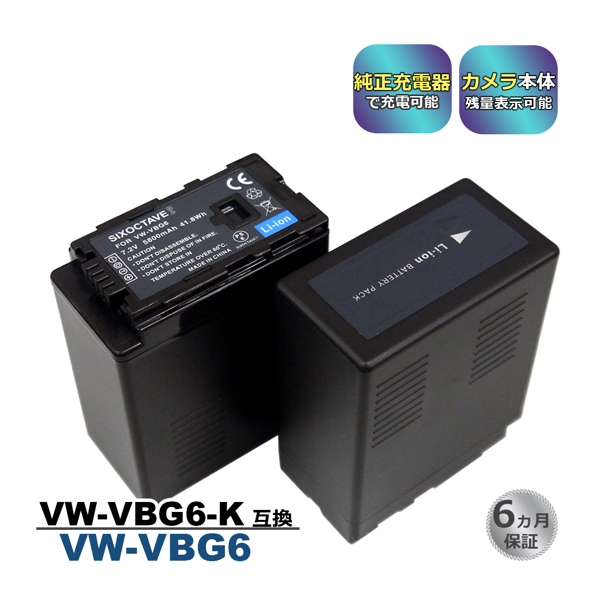 【互換品】 VW-VBG6 Panasonic パナソニック 互換 バッテリー2個set 純正品充電器で充電可能 VW-VBG6-K VW-VBG6GK VW-VBG6PPK VWVBG6PPK 電池パック AG-AF105