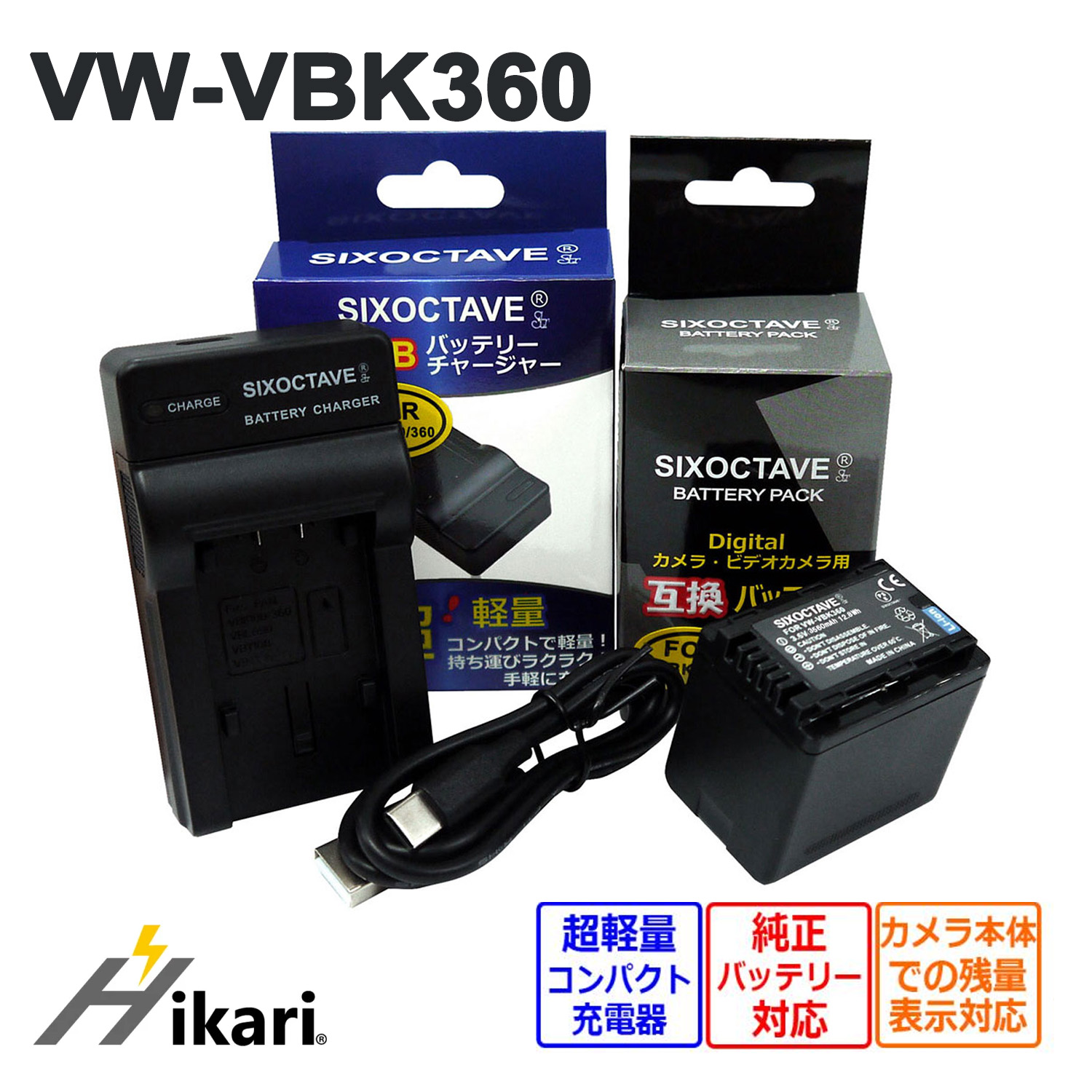 【互換品】 VW-VBK360-K VW-VBK360 Panasonic パナソニック 互換 バッテリー 1個と 互換 USB 充電器 の2点set 純正品にも対応 VW-BC10-K