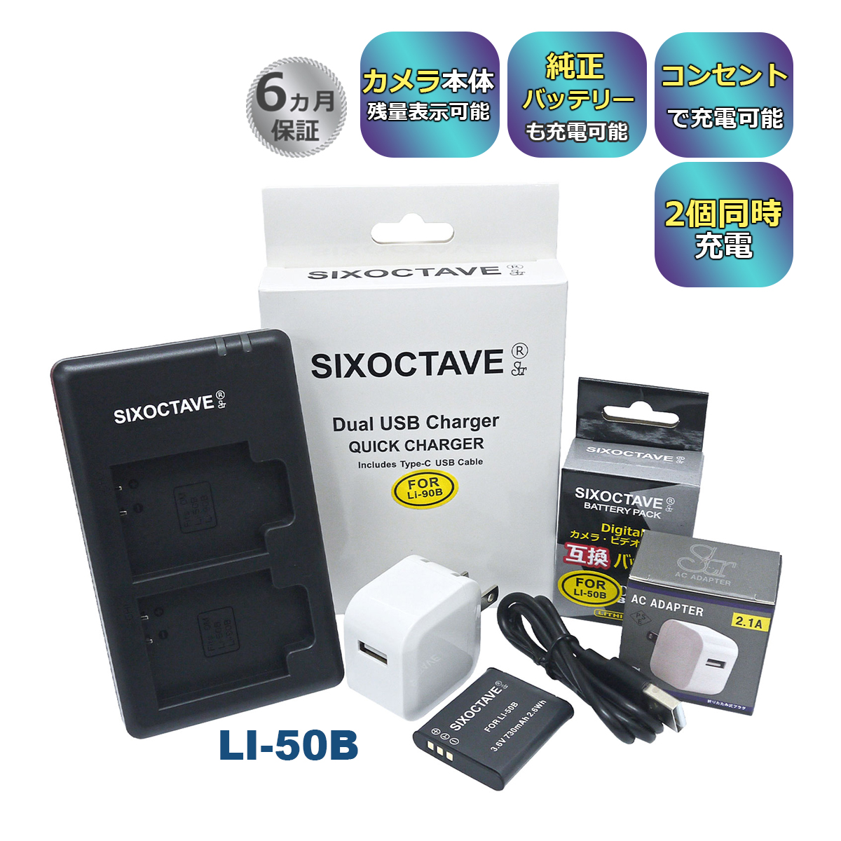 【互換品】 LI-50B OLYMPUS オリンパス 互換 バッテリー 1個と 互換デュアルUSB充電器 コンセント充電用ACアダプター付き 3点set UC-50 LI-50C a2.1