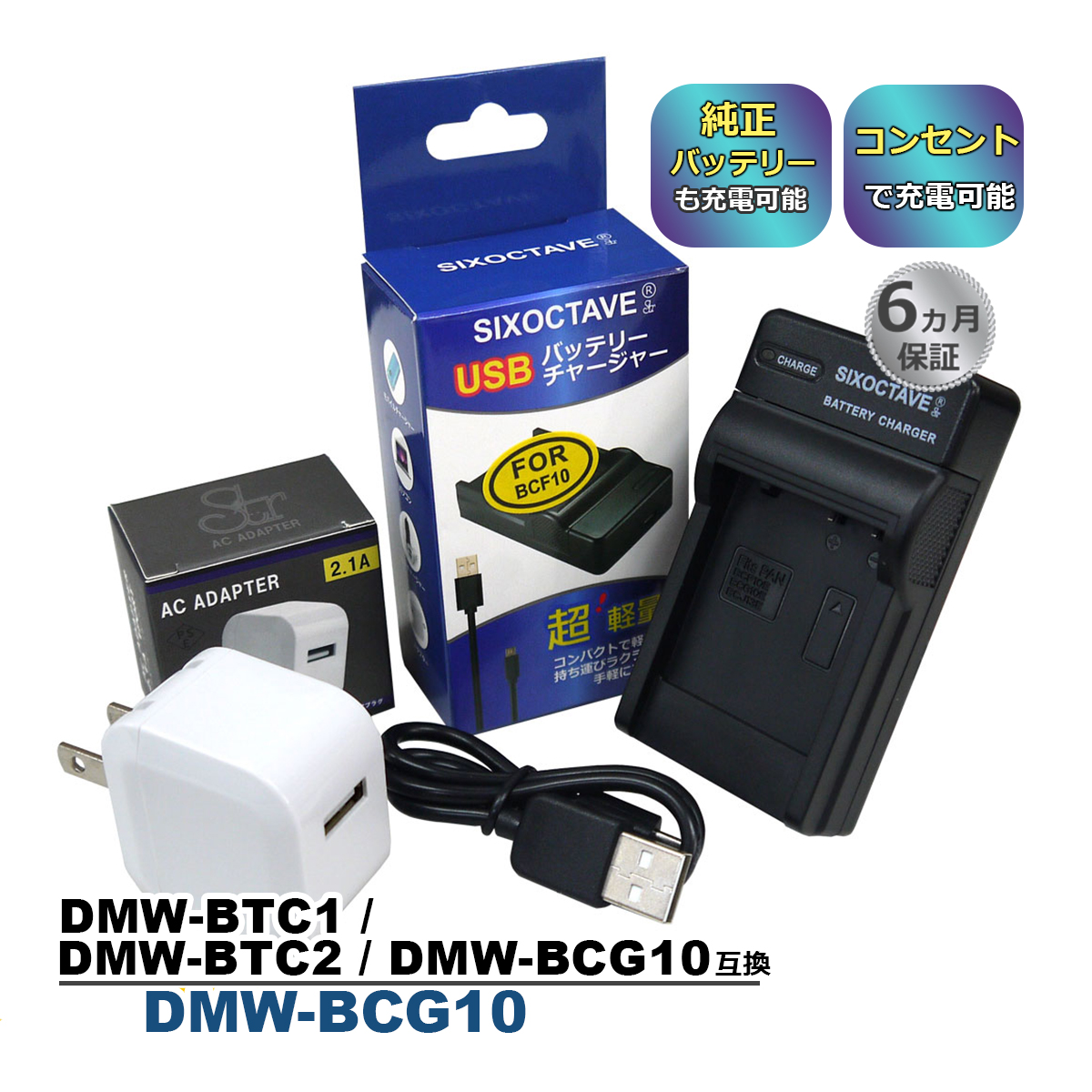 DMW-BCG10E DMW-BCG10 Panasonic パナソニック 互換USB充電器 ★コンセント充電用ACアダプター付き★ 2点セット DMW-BTC1 DMW-BTC2 (a2.1)