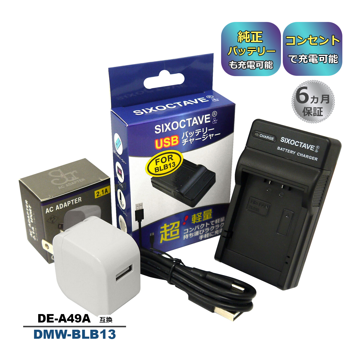 【互換品】 DMW-BLB13 Panasonic パナソニック 互換 USB 充電器 コンセント充電用ACアダプター付き 2点set 純正バッテリーも充電可能 ルミックス LUMIX a2.1