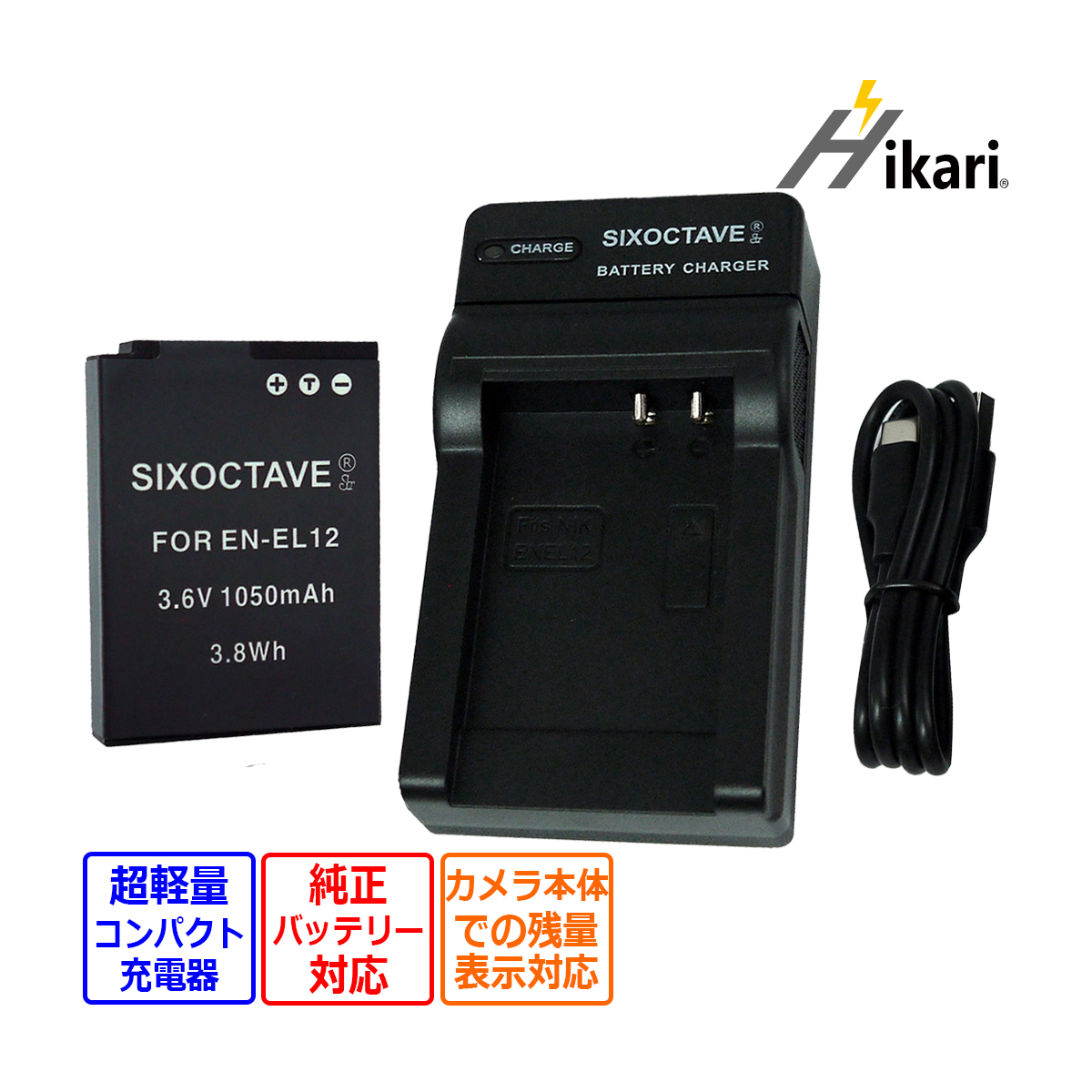 EN-EL12 Nikon ニコン 互換バッテリー 1個と 互換USB充電器 の2点セット 純正品にも対応 KeyMission 170 Coolpix AW100 AW110 AW120 クールピクス