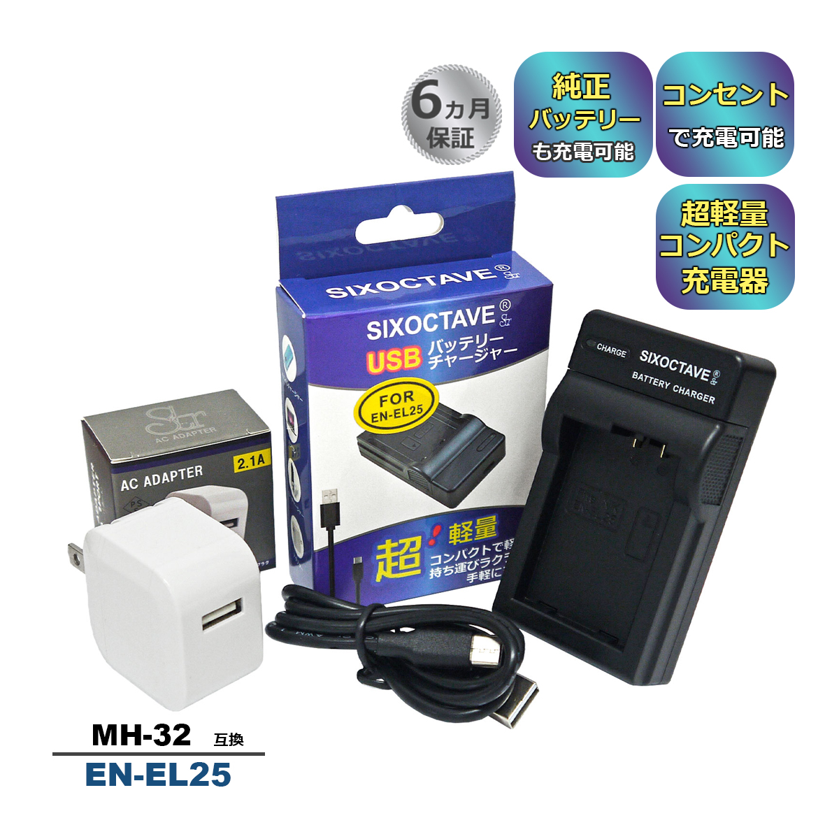 MH-32 EN-EL25 Nikon ニコン 互換USB充電器 ★コンセント充電用ACアダプター付き★ 2点セット 純正バッテリーも充電可能 Z 50 対応 チャージャー (a2.1)