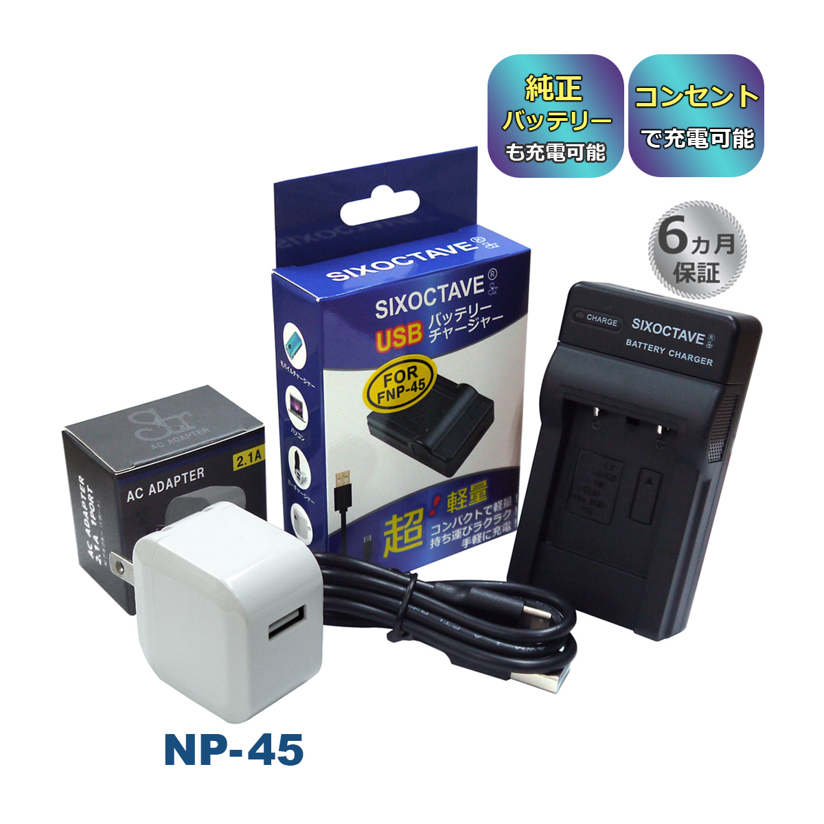NP-45 NP-45A NP-45B NP-45S 富士フィルム 互換USB充電器 ★コンセント充電用ACアダプター付き★ 2点セット (a2.1) 純正バッテリーも充電可能