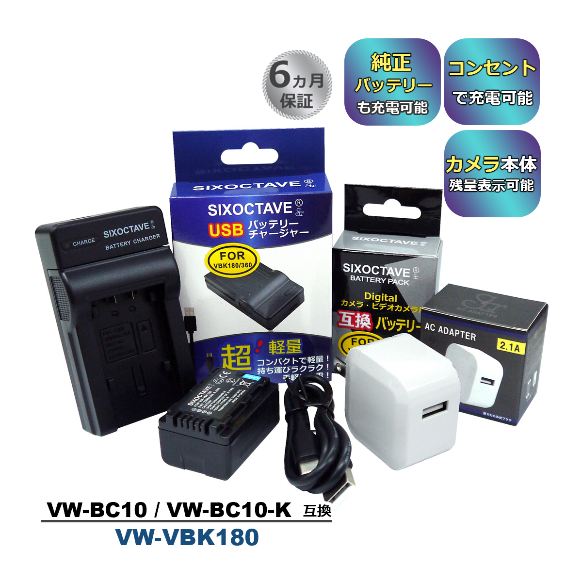 VW-VBK180-K VW-VBK180 Panasonic パナソニック 互換バッテリー 1個と 互換USB充電器 ★コンセント充電用ACアダプター付き★ 3点セット 純正品にも対応 (a1)
