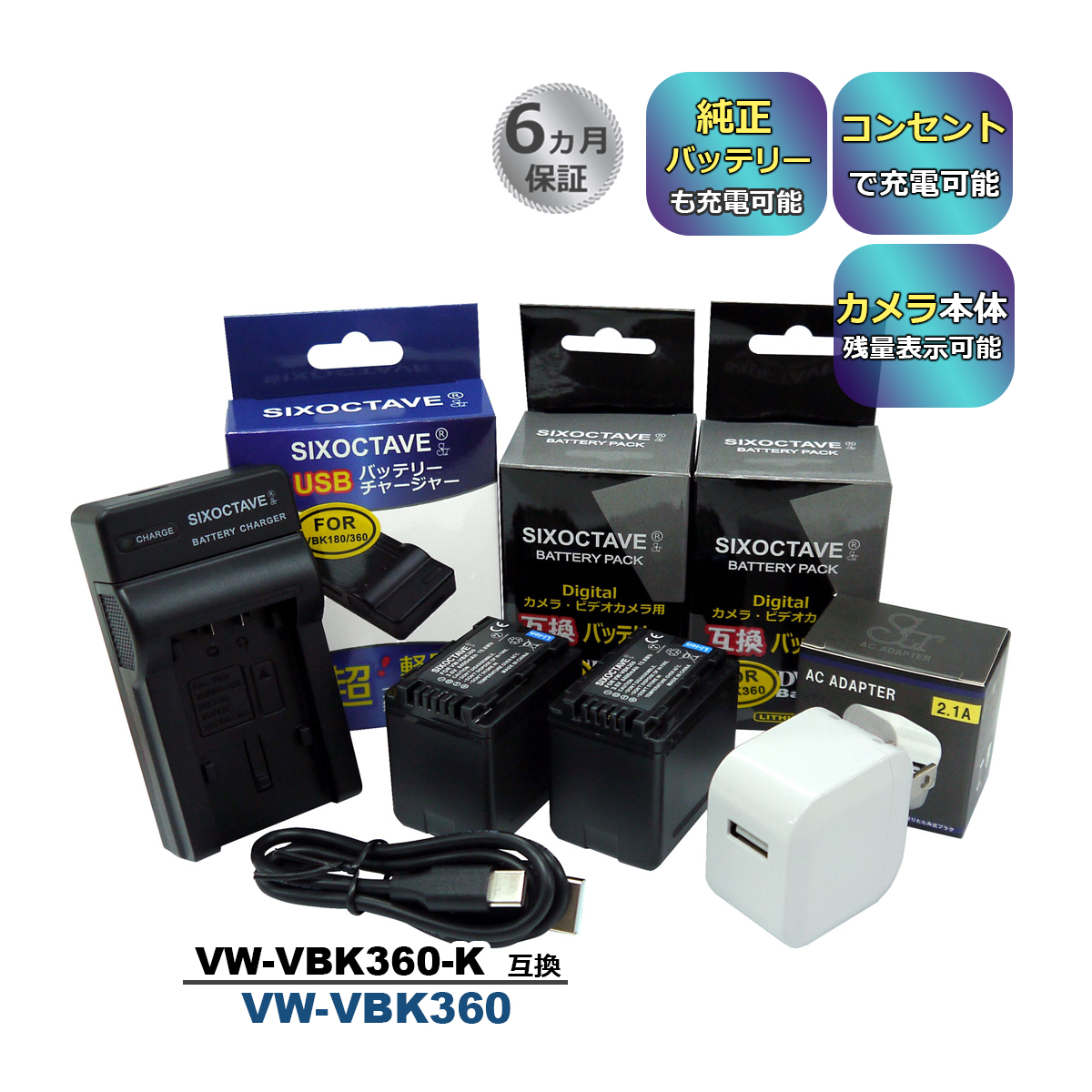 VW-VBK360-K VW-VBK360 Panasonic パナソニック 互換バッテリー 2個と 互換USB充電器 ★コンセント充電用ACアダプター付き★ 4点セット (a2.1)