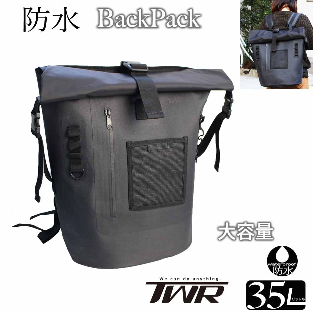防水バックパック(35L)ツーリング・梅雨・海・スキースノボ リュックbackpack黒ブラック TPU ロールトップ