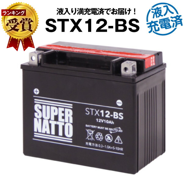 バイク用バッテリー YTX12L-BS互換 液入充電済 (FTX12-BS互換) STX12-BS