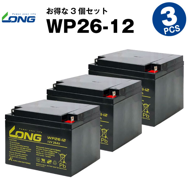 業務、産業用 WP26-12【お得!3個セット】 NP26-12B互換 新品 LONG 長寿命・保証書付き セニアカー 電動カート 農業機械 ソーラーシステム 対応 バッテリー