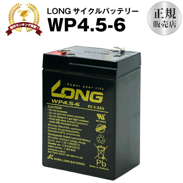 乗用玩具 WP4.5-6(産業用鉛蓄電池) 新品 LONG 長寿命・保証書付き 電動ポケバイなど対応 サイクルバッテリー
