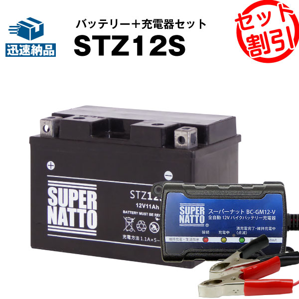 バイク バッテリー STZ12SYTZ12Sに互換 お得2点セット バッテリー+充電器(チャージャー) スーパーナット 総販売数100万個突破