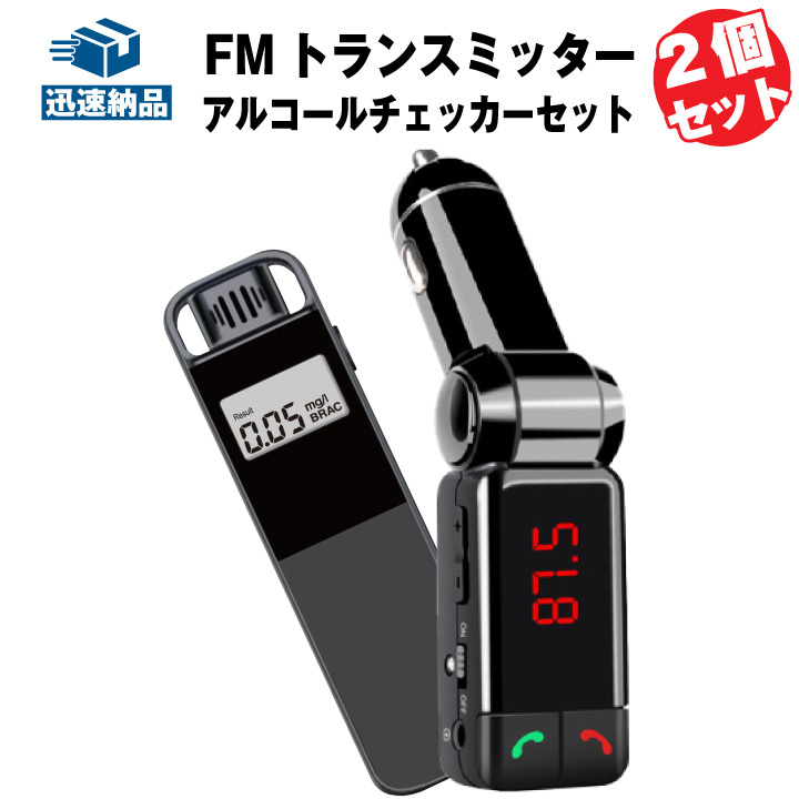 FMトランスミッター アルコールチェッカー セット Bluetooth対応 デュアルUSB電源ポート MP3/WMA再生 ハンズフリー通話 ワイヤレス ノイズキャンセリング機能