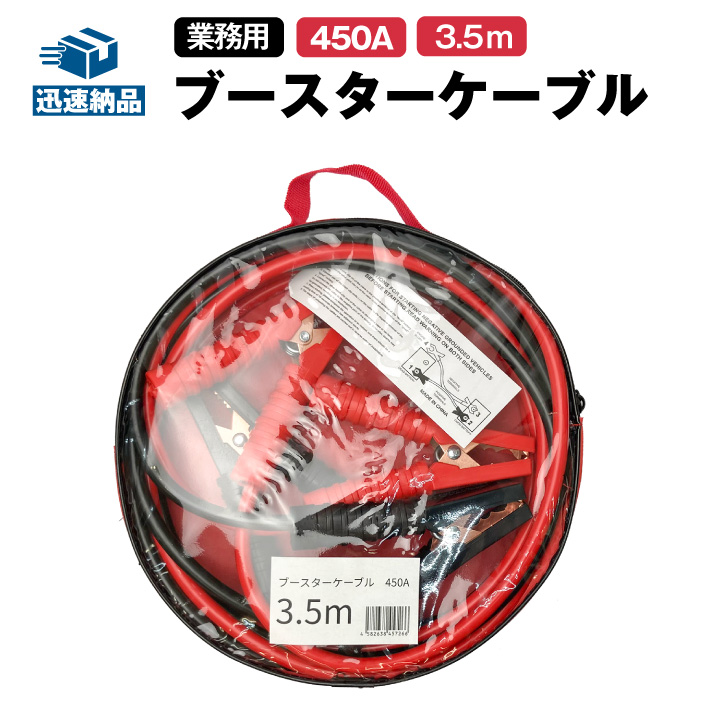ブースターケーブル 業務用 圧倒的な始動性能! 極太 3.5m 450A/直径10mm(SN-3) 12V/24V車対応 軽自動車・普通自動車・重機・船舶・大型トラックなど