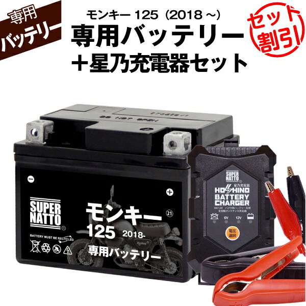 バイク用バッテリー+充電器セット ホンダ モンキー125 (2018年式〜)専用バッテリー HONDA 星乃充電器 総販売数100万個突破 100%交換保証 スーパーナット