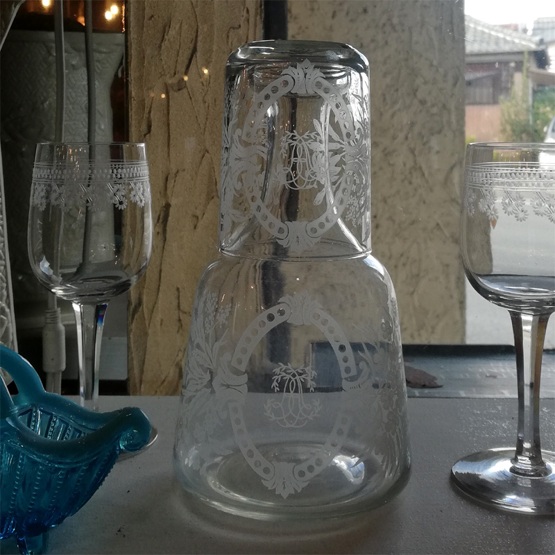 エッチドガラス ウォーター カラフェ&タンブラー イギリスヴィンテージ