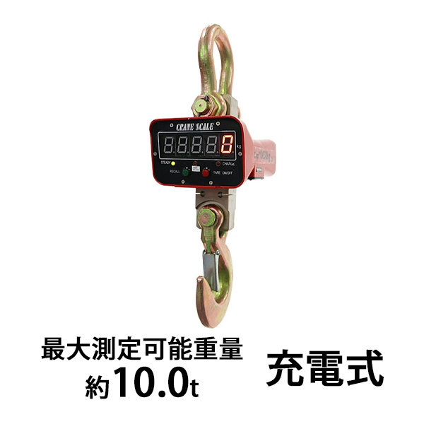 | デジタルクレーンスケール PSE適合 最大測定可能重量約10t リモコン付き 充電式 防滴 防塵 精密 計量 無線 ワイヤレス 吊りはかり 吊り秤 吊秤 電子秤 吊り下げ クレーン フック 玉掛け 吊り上げ 重機 コンパクト 天秤 天びん はかり 10000kg 赤 レッド cscalecs10000red | |||||