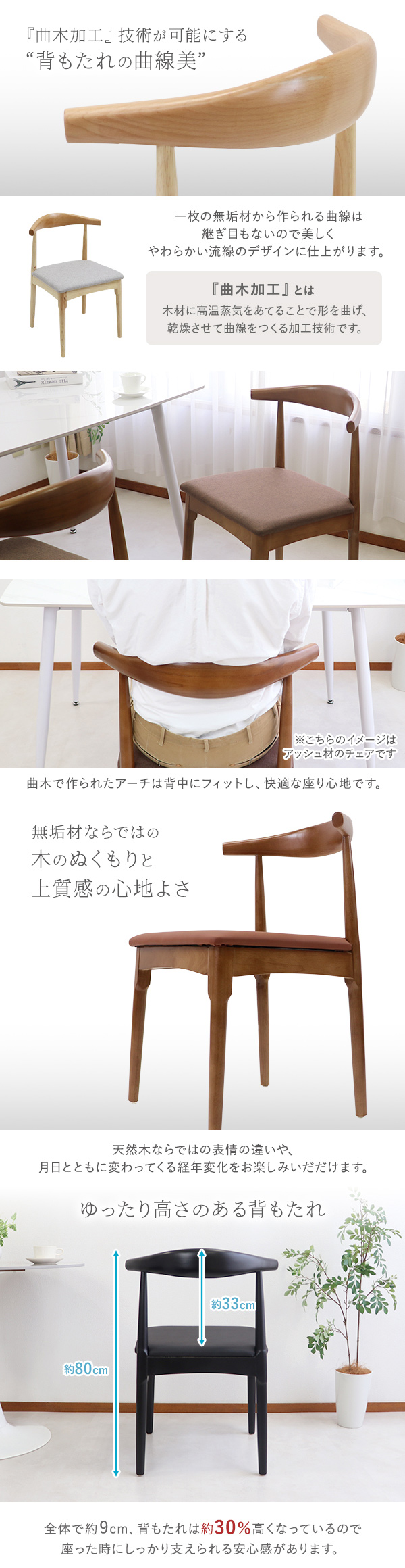 | ダイニングチェア 天然木 ラバーウッド 1脚 北欧チェア 木製 曲木 レザー ファブリック 完成品 無垢材 エルボー リビング チェア イス 椅子 シンプル 選べる ナチュラル ウォールナット ブラック ホワイト 黒 白 dchy | |||||