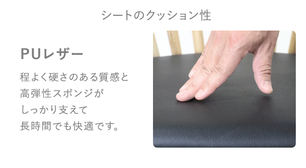 | 材質 | 〈本体〉アッシュウッド[無垢材]〈脚裏〉PVC 〈張り地〉PUレザー/PU(ポリウレタン) |