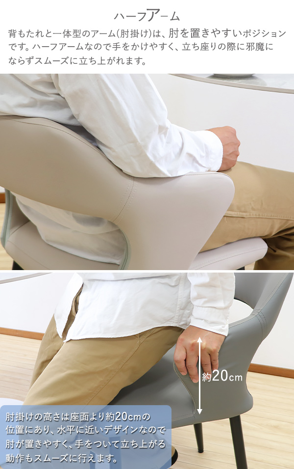 | ダイニングチェア 固定式 疲れにくい 1脚 PUレザー 約W56×約D54.5×約H78.5(cm) 耐荷重150kg 選べるカラー モダン おしゃれ 背もたれ 肘かけ 肘付き ハーフアーム ダイニング リビング dchaird06 | |||||