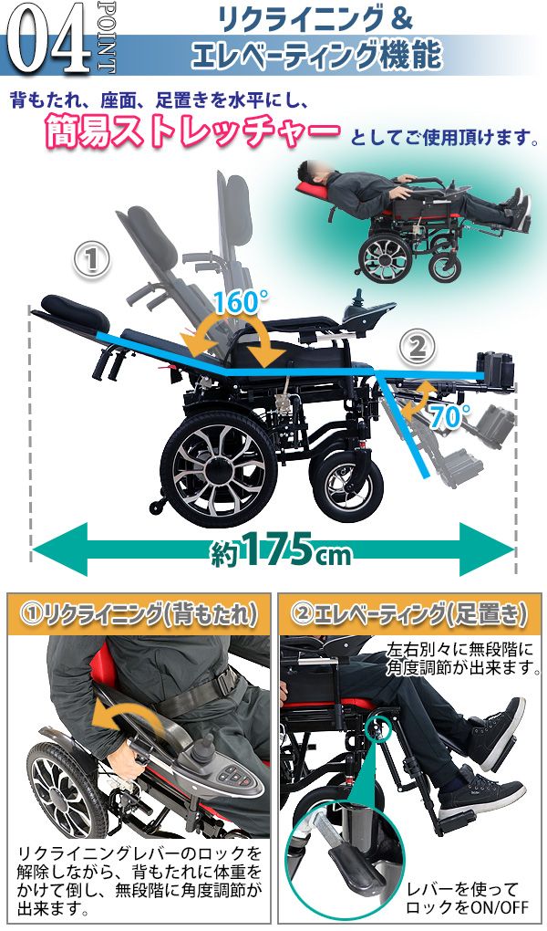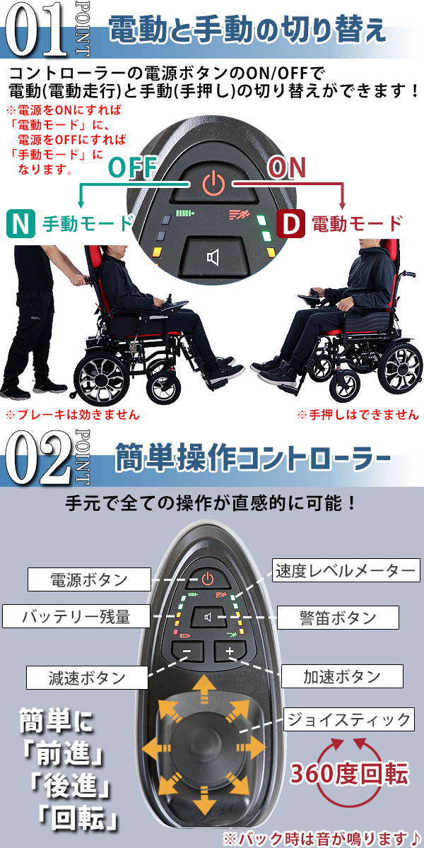 | フルリクライニング電動車椅子 選べるカラー PSE適合 TAISコード取得済 折りたたみ ノーパンクタイヤ 自走介助兼用 リクライニング電動車椅子 電動 手動 充電 電動ユニット 電動アシスト 電動カート 折り畳み 車椅子 車イス 車いす 介護 福祉 介助 ewheelchaire05a | |||||