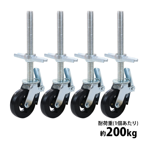 キャスター 足場キャスター ジャッキキャスター 自在キャスター 重量用 ゴム製 ストッパー付き 4個セット 耐荷重約200kg(1個あたり) 車輪直径約150mm 幅約50mm 自在車 ゴムキャスター ゴム車輪 ラバー ジャッキ付き ローリングタワー 高さ調整 scacs60rus51r4p | |||||