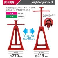 | ジャッキスタンド アルミ 軽量 定格荷重約9t 約9000kg(2台合計) 2台セット 赤 高さ約270mm〜415mm 無段階調節 2基 ダイカスト ダイキャスト 頑丈 ウマ 馬ジャッキ リジッドラック メンテナンス 整備 タイヤ交換 サポート RV車 レッド stackjack9tred2p | |||||