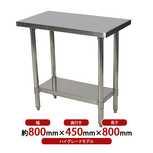 オールステンレス作業台 2段 耐荷重約160kg 約幅800×奥行450×高さ800mm SUS304 ハイグレードモデル ステンレステーブル ワークテーブル ステンレス台 業務用