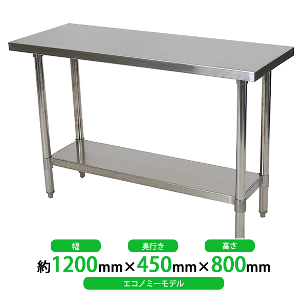 オールステンレス作業台 2段 耐荷重約200kg 約幅1200×奥行450×高800mm 板厚約1.2mm SUS430 エコノミーモデル ステンレステーブル ワークテーブル ステンレス台