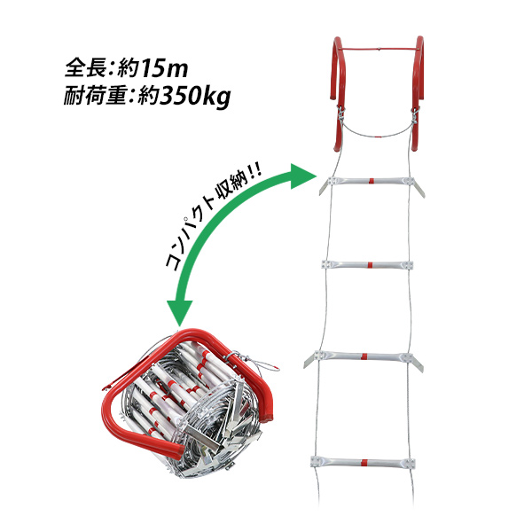 避難はしご 折りたたみ 全長約15m 耐荷重約350kg 梯子 はしご 防災用品 防災グッズ 5階用 もしもの時の 緊急避難はしご 避難用はしご 縄はしご 非常はしご 防災