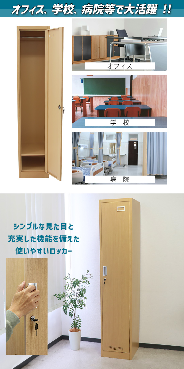 | ロッカー おしゃれ スチールロッカー 1人用 木目調 鍵付き スペアキー付 1列1段 スチール製 収納 オフィス 事務所 会社 業務用 スリム かぎ付き 更衣ロッカー オフィスロッカー キャビネット オフィス用品 ナチュラル 10-005new | |||||