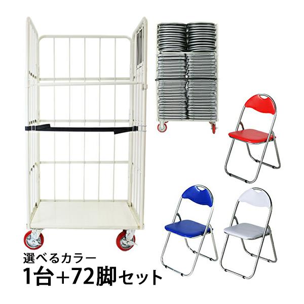 72脚セット パイプイス カラー選択 カゴ台車付き 折りたたみパイプ椅子 ミーティングチェア 会議イス 会議椅子 パイプチェア パイプ椅子 X カゴ台車 収納台車 xc72set | |||||