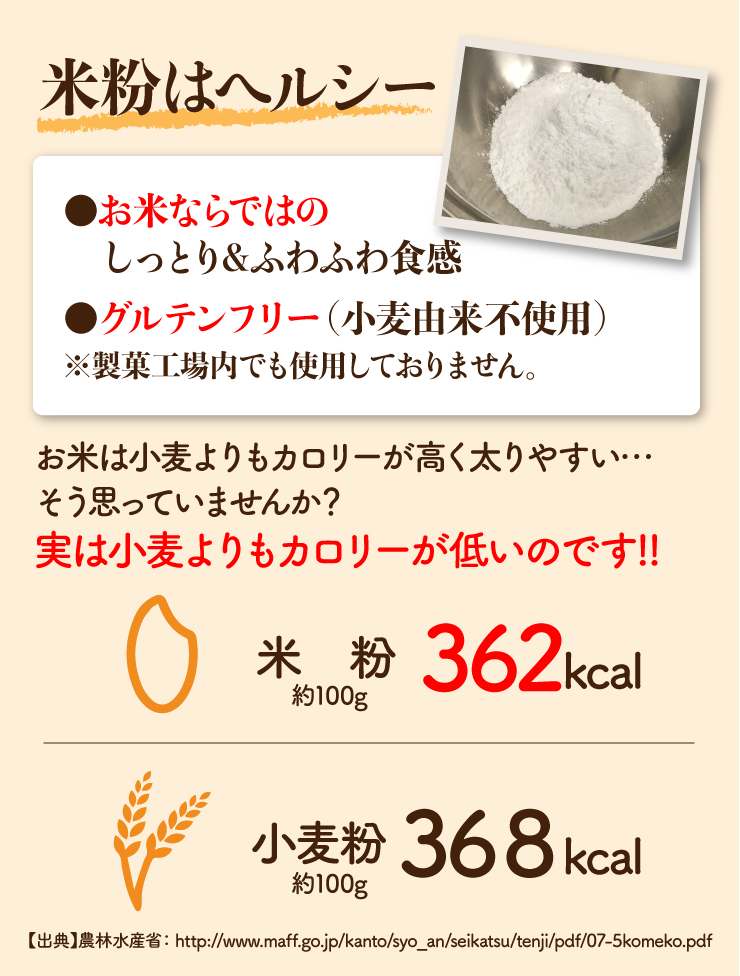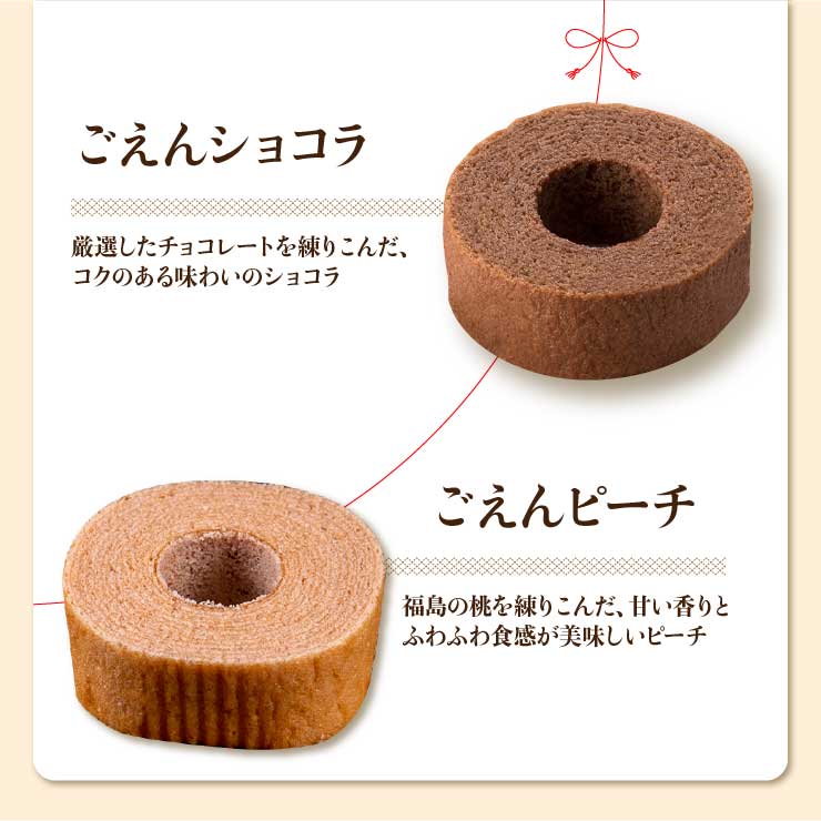 ピーチ: 卵(国産)、砂糖、クリーム(乳製品を含む)ショートニング、米粉、コーンスターチ、水飴、バター、乳等を主源料とする食品、桃、ピーチ果汁加工品/加工澱粉、香料、乳化剤(大豆由来)、酸味料、ペクチン、着色料