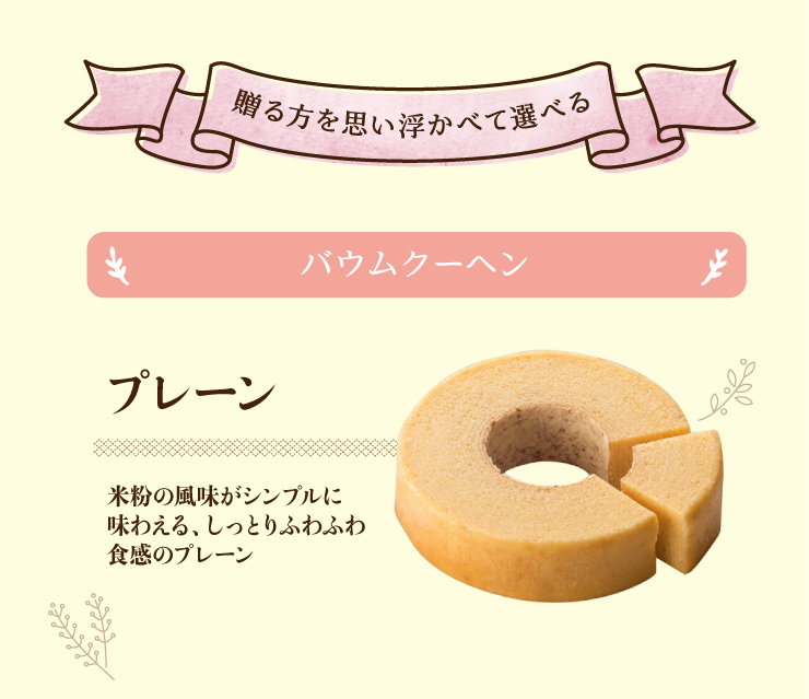 | 米粉ならではのしっとり&ふわふわ食感のプレーンM。マジパンプリントもお選びいただけます。 |