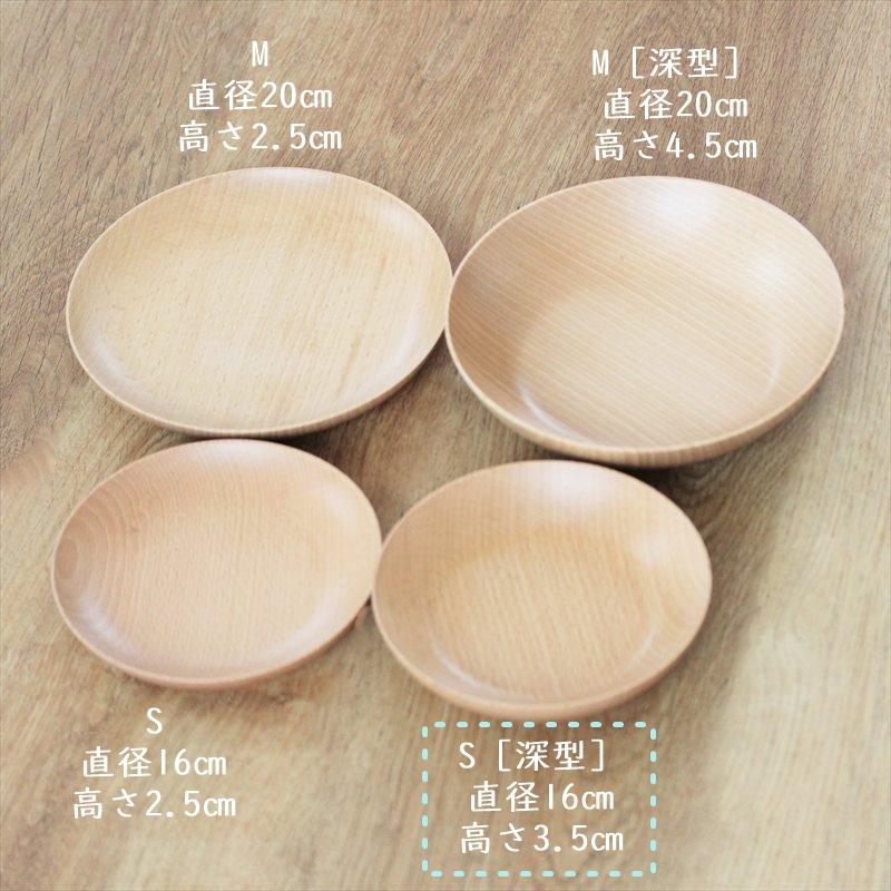 【木のお皿まるSサイズ】と同じ大きさですが、底が少し深くなっています。こぼれやすそうなものも、深型なら補えますので、カレーやシチューなどといった汁物も大丈夫。また手に持ちやすいサイズなので取り皿やお子様のサイズにもぴったりです♪