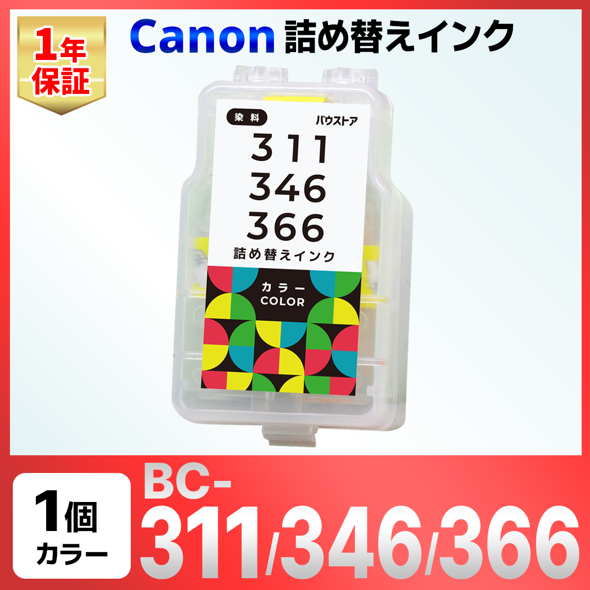 【互換品】BC-311 BC-311XL BC-346 BC-346XL BC-366 BC-366XL 詰め替えインク カラー 1個 iP2700 MP493 TS3130 TS3130S TS3330 TS203 TR4530 TS3530 TS3730