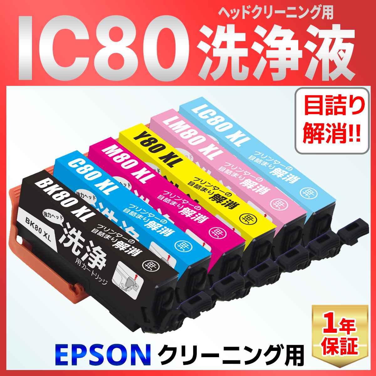 IC6CL80L IC80 とうもろこし EP-707A EP-708A EP-777A 807 808 907F 977A3 978A3 979A3 982A3 洗浄 クリーニング カートリッジ 6色 インク目詰まり カスレ解消