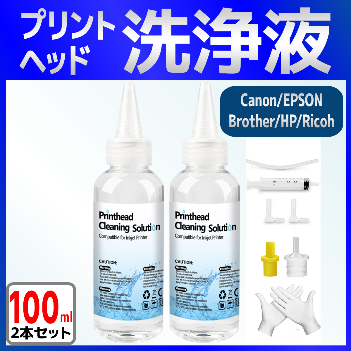 洗浄液 クリーニングキット インクジェットプリンター プリントヘッド 100ml 2本セット (Canon/EPSON/brother/HP/Ricoh 等対応) インク目詰まり カスレ解消
