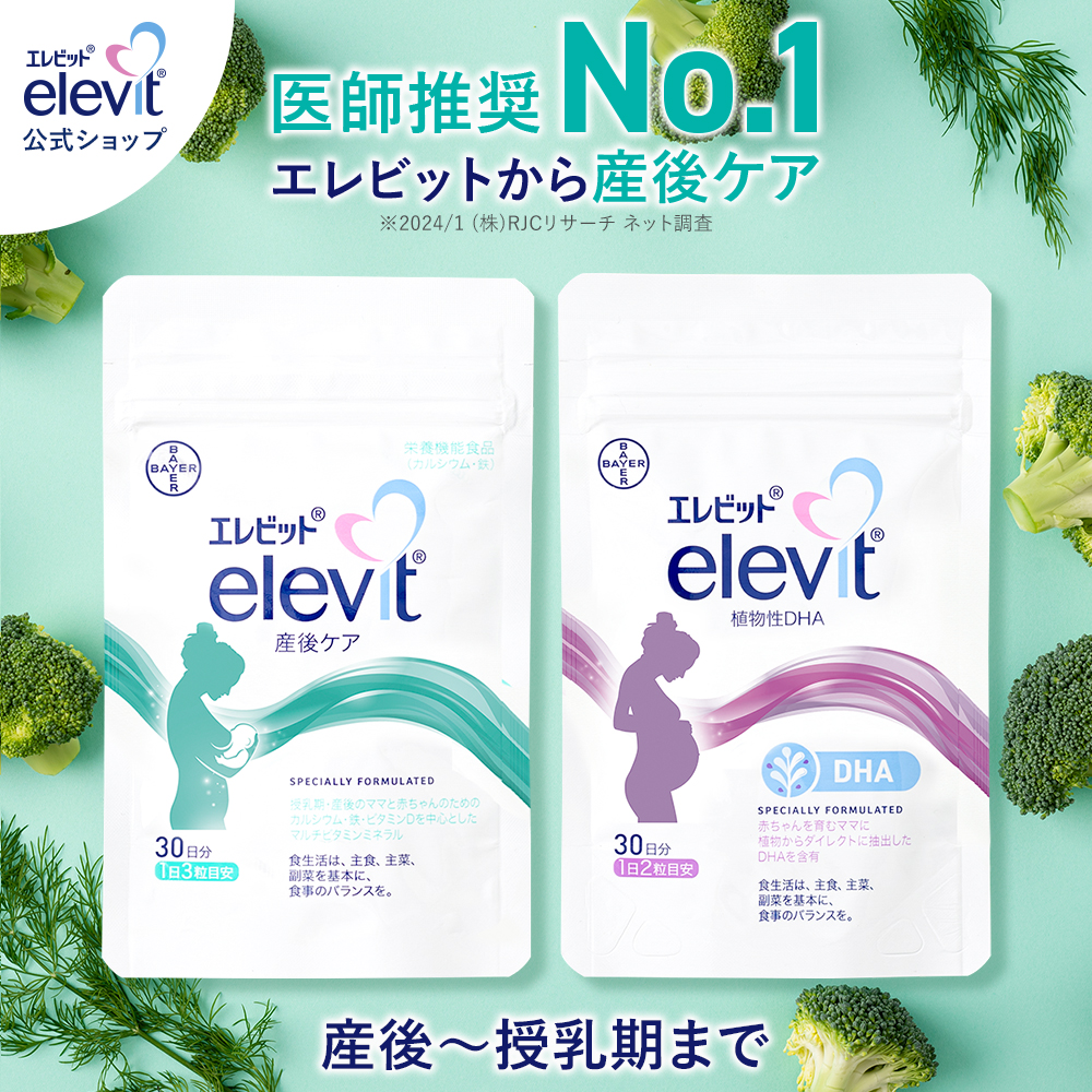 エレビット産後ケア+エレビット植物性DHAセット サプリ 産後 母乳 授乳 育児 DHA 葉酸 エレビット公式 (バイエル薬品)