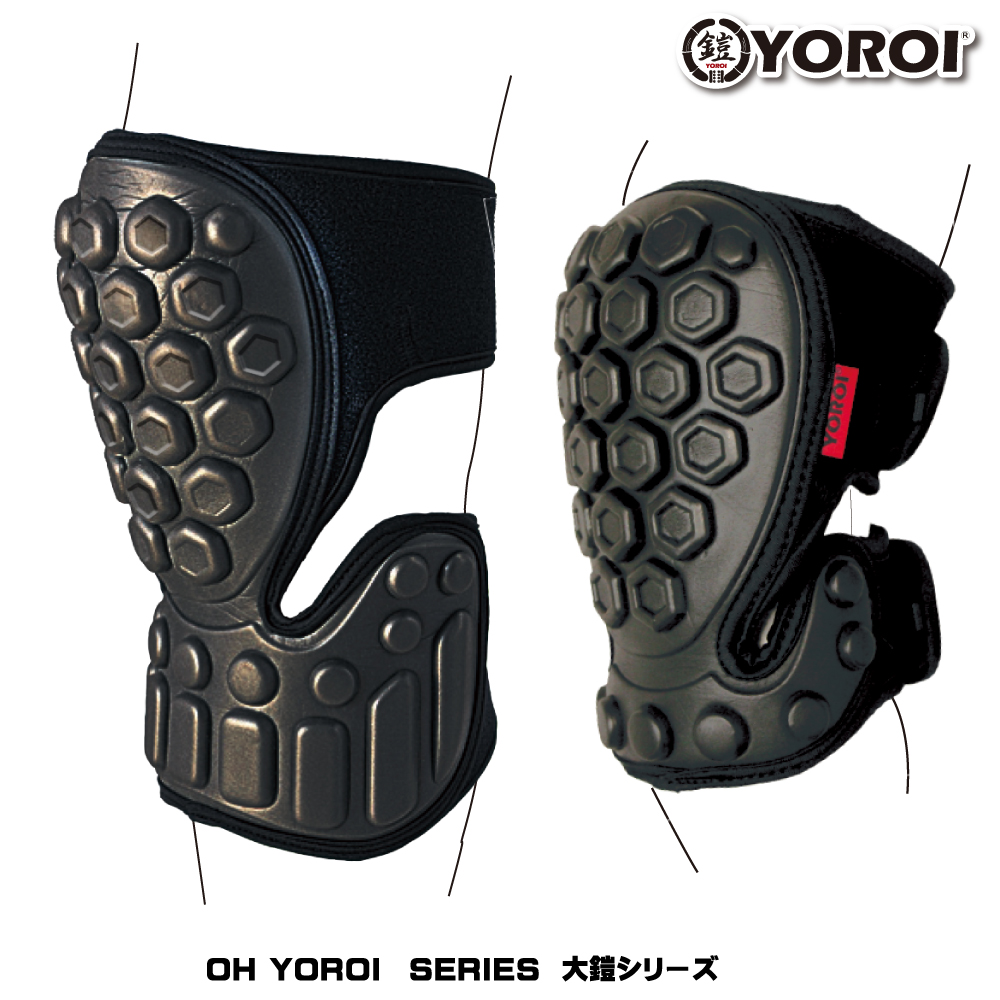 亀甲型立体モールドパッドが、肘を包み込む形状。どこでも留めらるマジックボディは、あらゆる体型のユーザーに対応する。強靭ソフトプロテクターの最上級モデル「OH-YOROI (オオヨロイ)」。