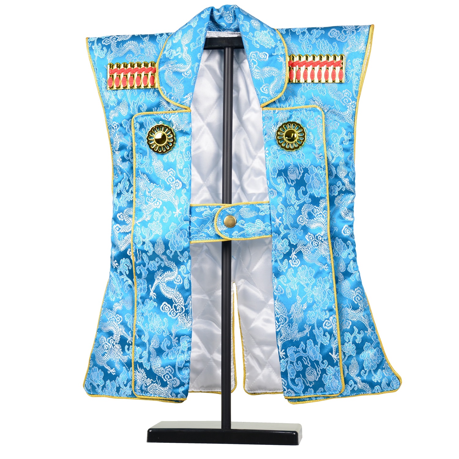 陣羽織 青 青色ジャガード龍柄 中綿入り 台付セット 【五月人形】【端午の節句】【衣装】【子どもの日】