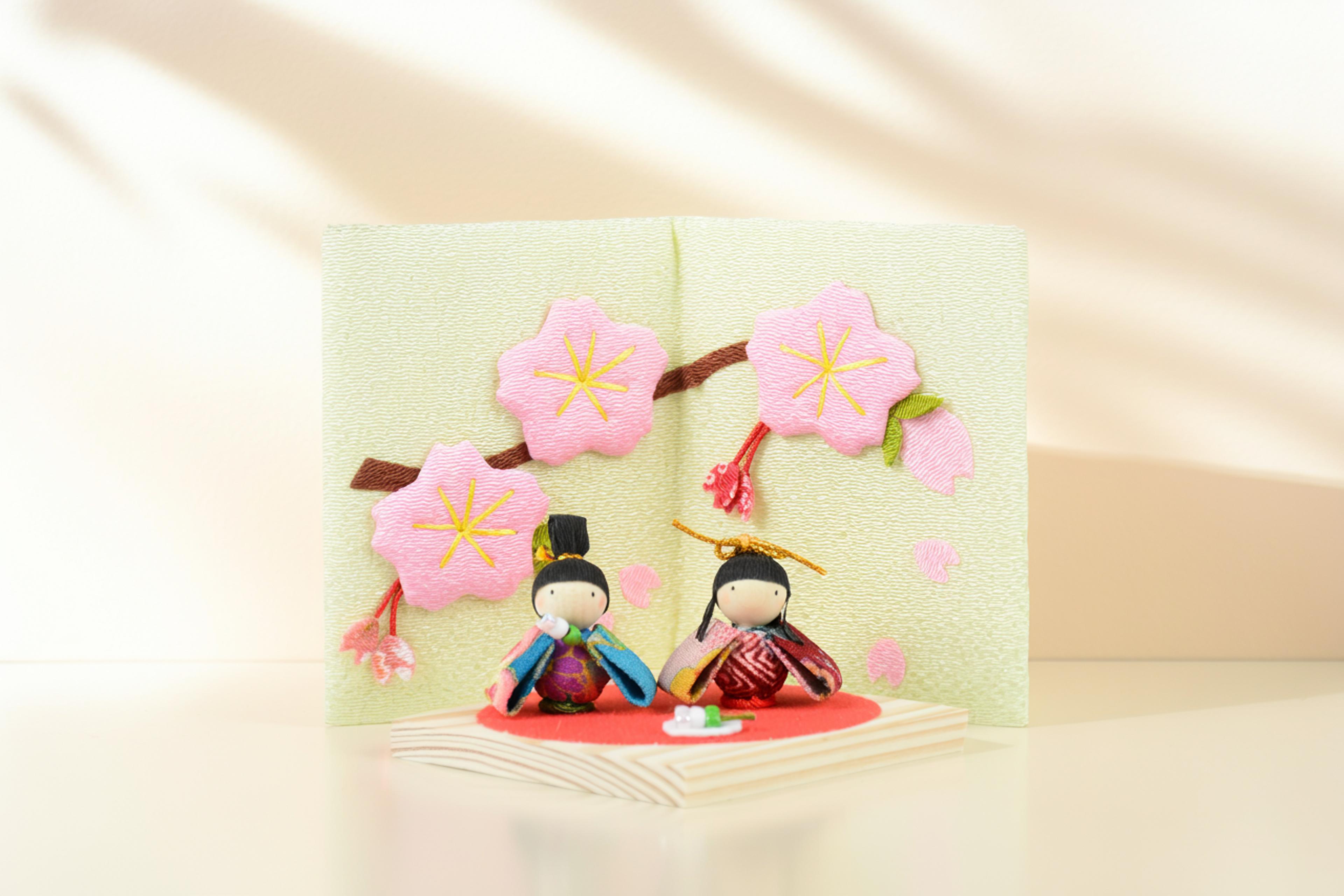 さくら お花見日和 ちりめんひな飾り 幅9.5cm ミニサイズ コンパクト 日本製 縮緬 ひな人形 雛人形 雛祭り 桃の節句 三月飾り 女の子